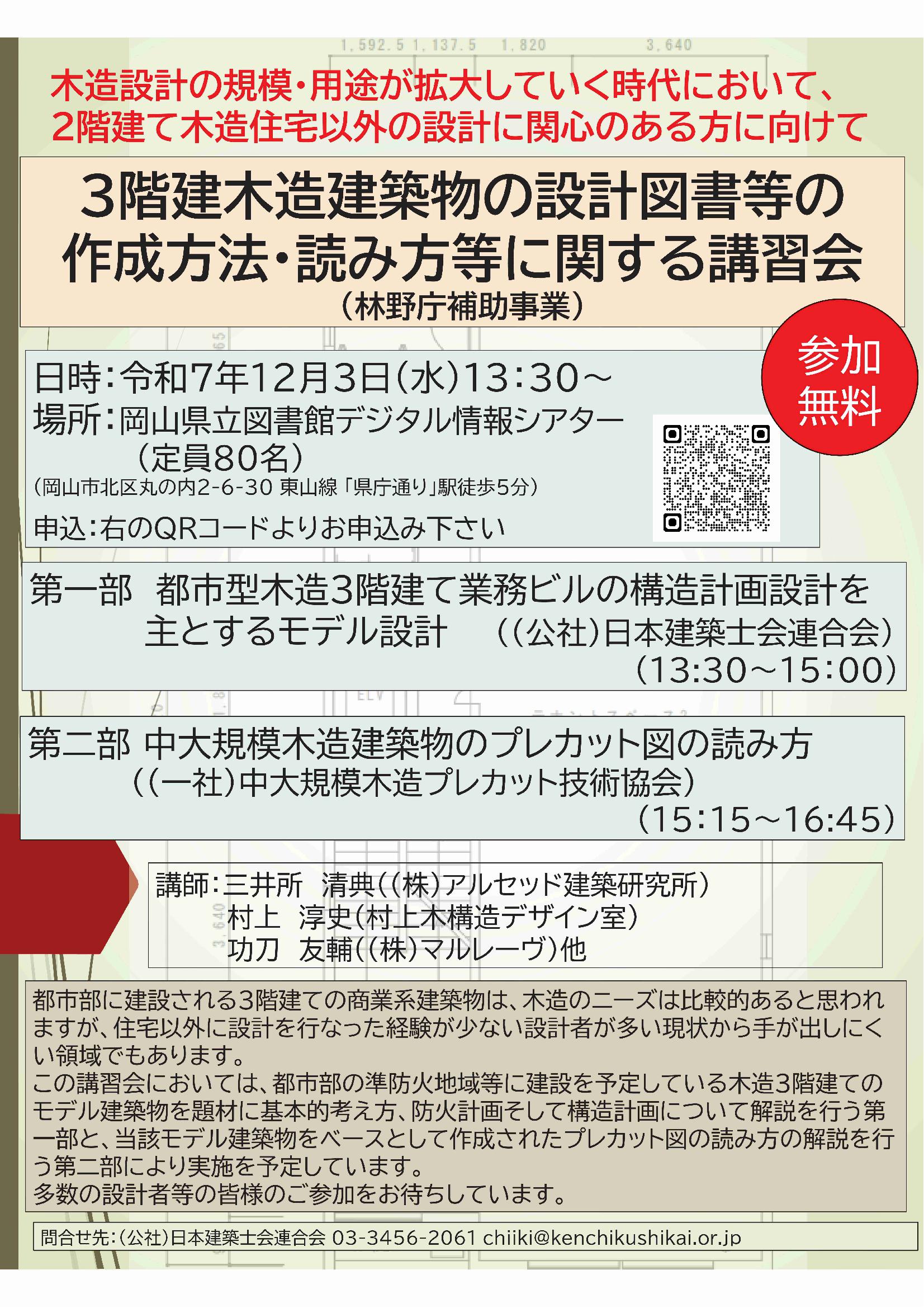 【連合会】3階建木造建築物の設計図書等の作成方法・読み方等に関する講習会 12/3